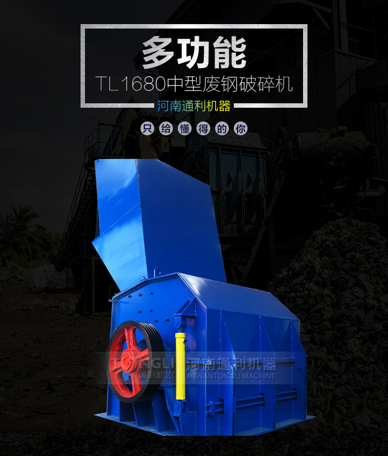 河南通利1680金属破碎机由主机一台,生产线一条,磁设备一台,输送机一台,电机一台组成,厂家可为您提供系列化的金属破碎机和整个破碎工厂的工艺装配配置。用于破碎轻薄料如汽车外壳混合废金属,包括金属打包块的破碎,机器通过不断、化以及经验的积累,掌握了设计和制造金属破碎机的技术诀窍,从而设备长期可靠地低成本运行。